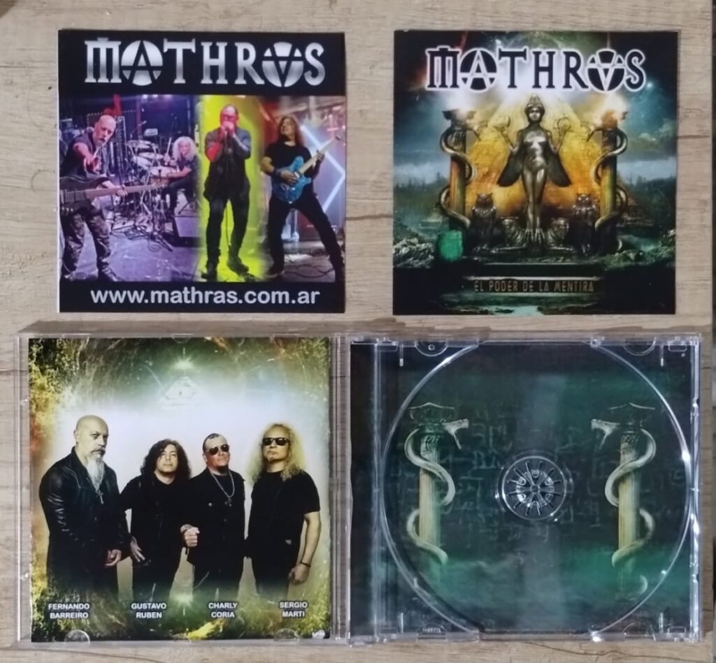 What can we say about the cover? Tremendous!!! I like it when bands appeal to people’s intelligence when they approach an album and the cover of “El Poder De La Mentira” is one of those that dazzle you for a long time, trying to discover the concept and the message. Of course all the graphic art on the inner envelope continues in the same vein with a single photograph of the band inserted. By the way, with the disc comes some very nice stickers and a mini-poster of the band, which is appreciated for its inclusion. Another great feature is the outer sleeve that accompanies the acrylic box, which has the same cover design, continuing the graphic concept already mentioned. It is to be applauded. It would deserve a vinyl edition, because up to now it is only available in compact disc, as far as physical format is concerned. For that you can contact the band at https://www.mathras.com.ar or on their official facebook, https://www.facebook.com/MathrasSitioOficial/.