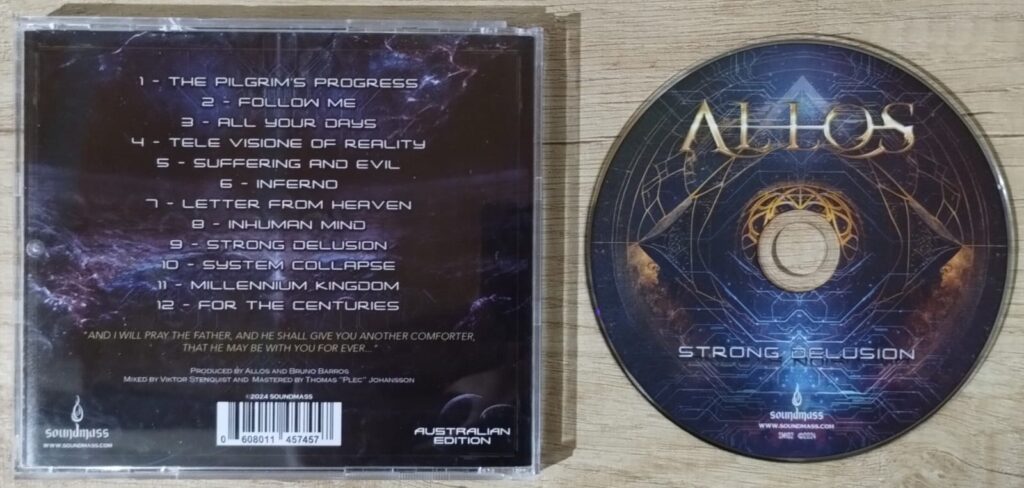 “Strong Delusion” parece un disco fuera de época. Quizá si hubiera editado allá por el año 2000, generaría mas interés. Hoy en día, dudo que haya algo en materia de Power Metal Épico que sorprenda mas allá de lo que ya conocemos y podemos esperar. De todas maneras, el album es un gran trabajo con una producción correcta y de gran nivel. Además de las consabidas participaciones de Liljegren y Rob Rock, hay una larga lista de músicos invitados, que elevan el potencial del disco. Claro, Allos es un cuarteto solamente (voz, guitarra, bajo y batería). Ahora falta saber como suena en vivo todo el arsenal desplegado en el disco. Las letras son cristianas, directas sin mucha vuelta. En ese aspecto, Allos no se mueve en ningún momento.