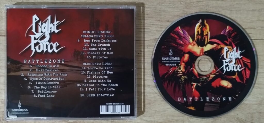 This edition is really worth it. Not only does it contain the original version of “Battlezone”, but it also contains the material mentioned above, although in our opinion, a double edition would have been better. The internal booklet contains the lyrics of the songs, vintage photographs and even pictures of the very early Lightforce. What to say about the album cover, impressive and keeping all the original color and design, and not only that, but it also has the original album cover, much more Heavy Metal!!!! Really to applaud the re-editing work done by the Soundmass label.