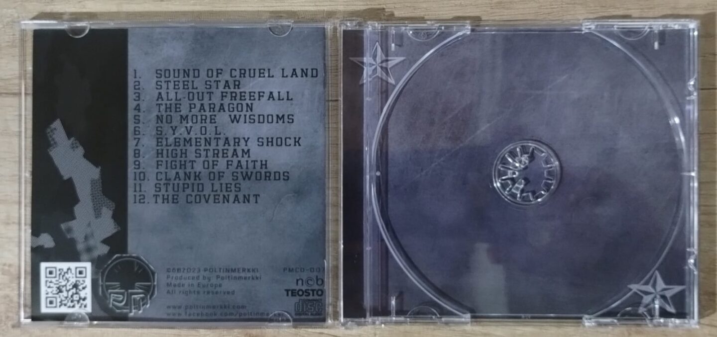 The album cover is as simplistic as the album itself, which is consistent with the content. The inner sleeve contains photos of the band, the lyrics and other technical information. Simple but concise, which is perfect. Needless to say, “Steel Star” is an independent production by Poltinmerkki, with everything done by the band themselves: recording, production, and mixing, mastered by Svante Forsbâck/Chartmakers. The result is a clear, powerful sound, where the bass can be heard in all its fullness, with a very original guitar sound that gives the final result a unique personality. As we mentioned earlier, you can tell that the album is “played,” not the result of knobs on a console. That alone makes it worth a listen.
