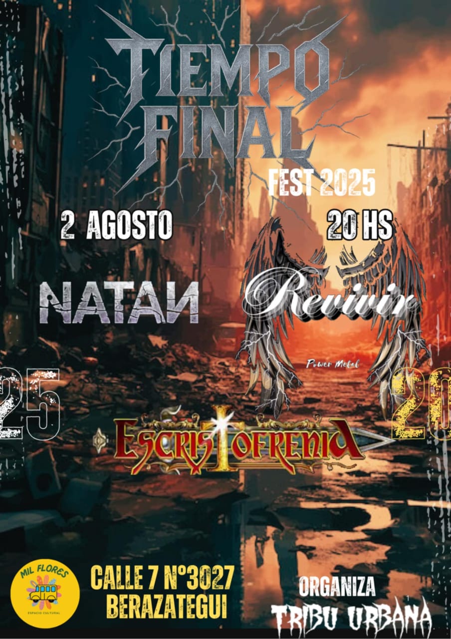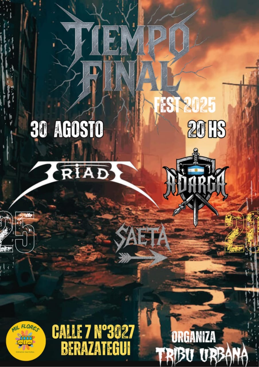 The friends of the radio program “Tiempo Final” and the people from “Tribu Urbana” are organizing two completely free events featuring several bands. Both events will take place at the cultural space “Mil Flores,” located at Calle 7, No. 3027, Berazategui, starting at 8 p.m.