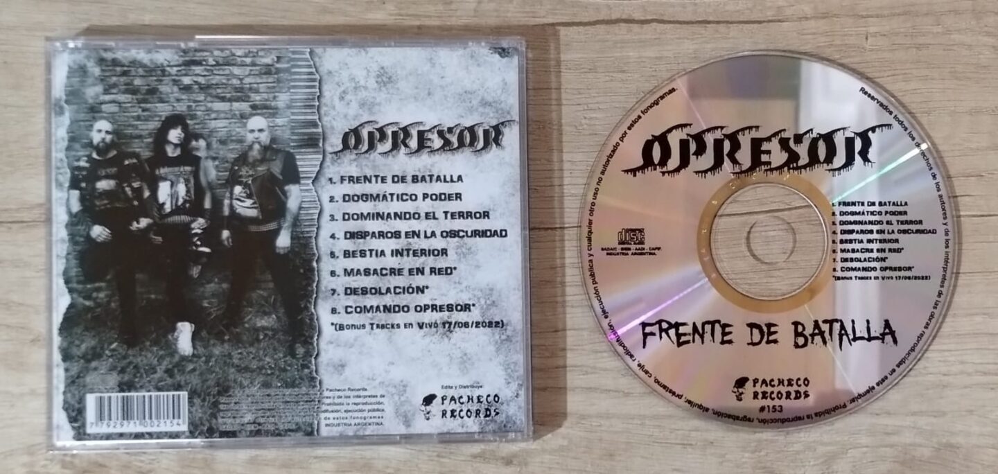 En ese sentido, “Frente De Batalla”, resulta ser un álbum totalmente inspirado en las bandas mencionadas, manteniendo la esencia del Thrash Metal duro y aguerrido, como tiene que ser. Con apenas 8 temas, tres grabados en vivo, Opresor da a conocer en este segundo disco parte de su propuesta.