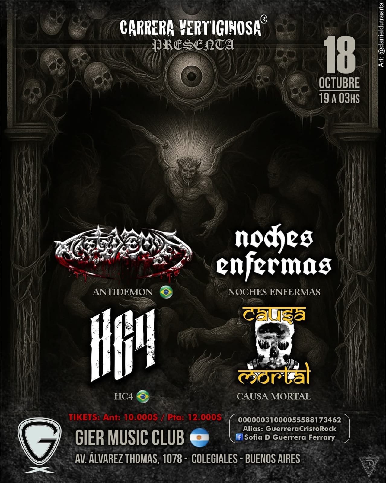 The first show will be alongside Brazilian hardcore band HC4 and local band Escristofrenia at Primer Piso Bar, Avenida Rivadavia 1392, Buenos Aires. Then, on October 18, they will perform at Gier Music Club, Alvarez Thomas 1078, Buenos Aires, again with HC4, and the bands Noches Enfermas and Causa Mortal.