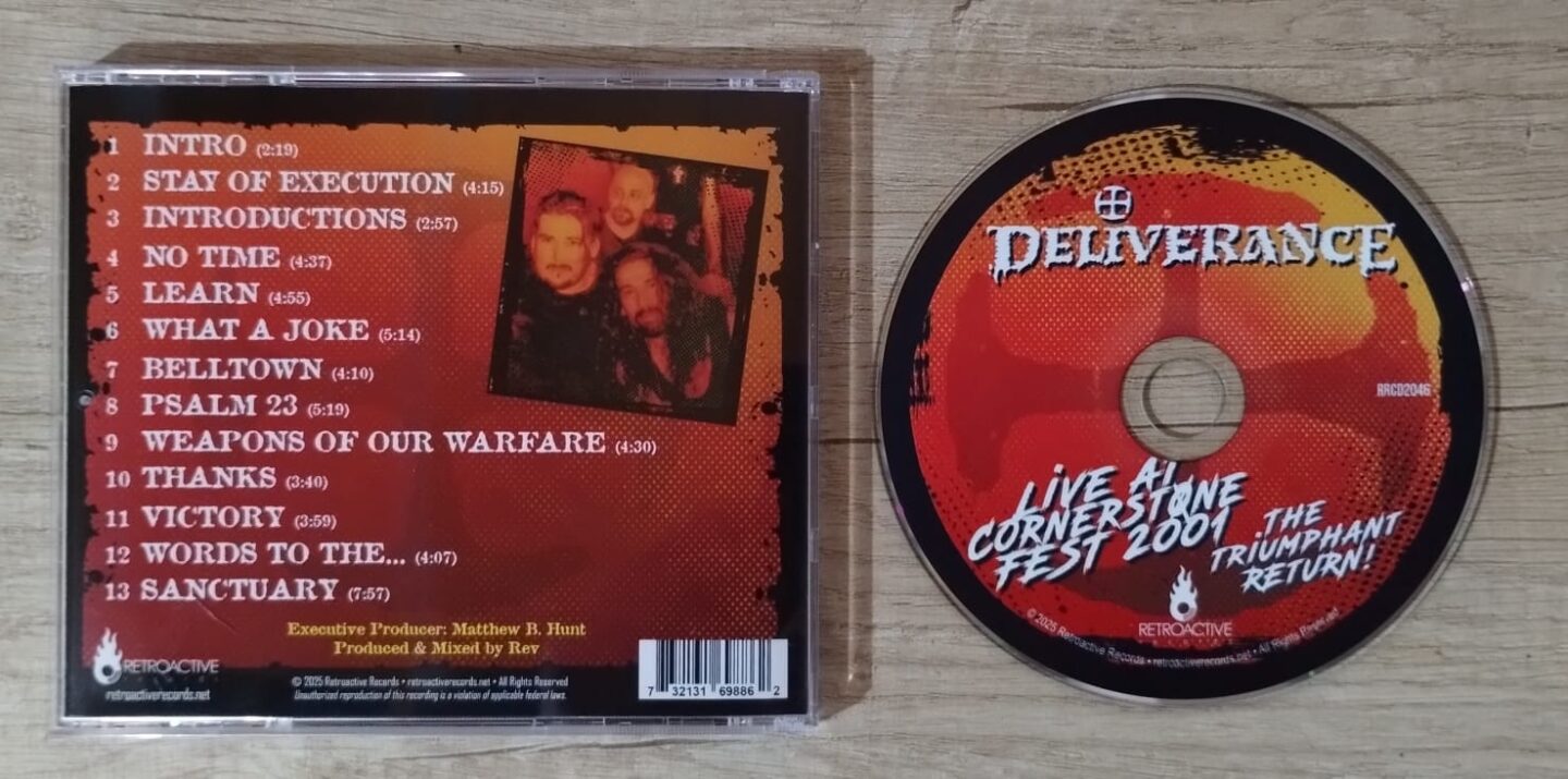 Completely out of print and only available on certain digital platforms, the “Live At Cornerstone Fest 2001” series, which includes several bands, among them the one we are discussing here, became a kind of gem lost in time, highly coveted by collectors. That, plus the fact that there weren’t many copies, that it’s the only “official” live stuff released by Deliverance, and above all that this show marked Deliverance’s first official comeback, make this material something special. Well, the label “Retroactive Records” came up with the brilliant idea of rescuing and re-releasing this material in physical format, with a new design and on both CD and LP, which is to be applauded. Let’s see what this edition has to offer.