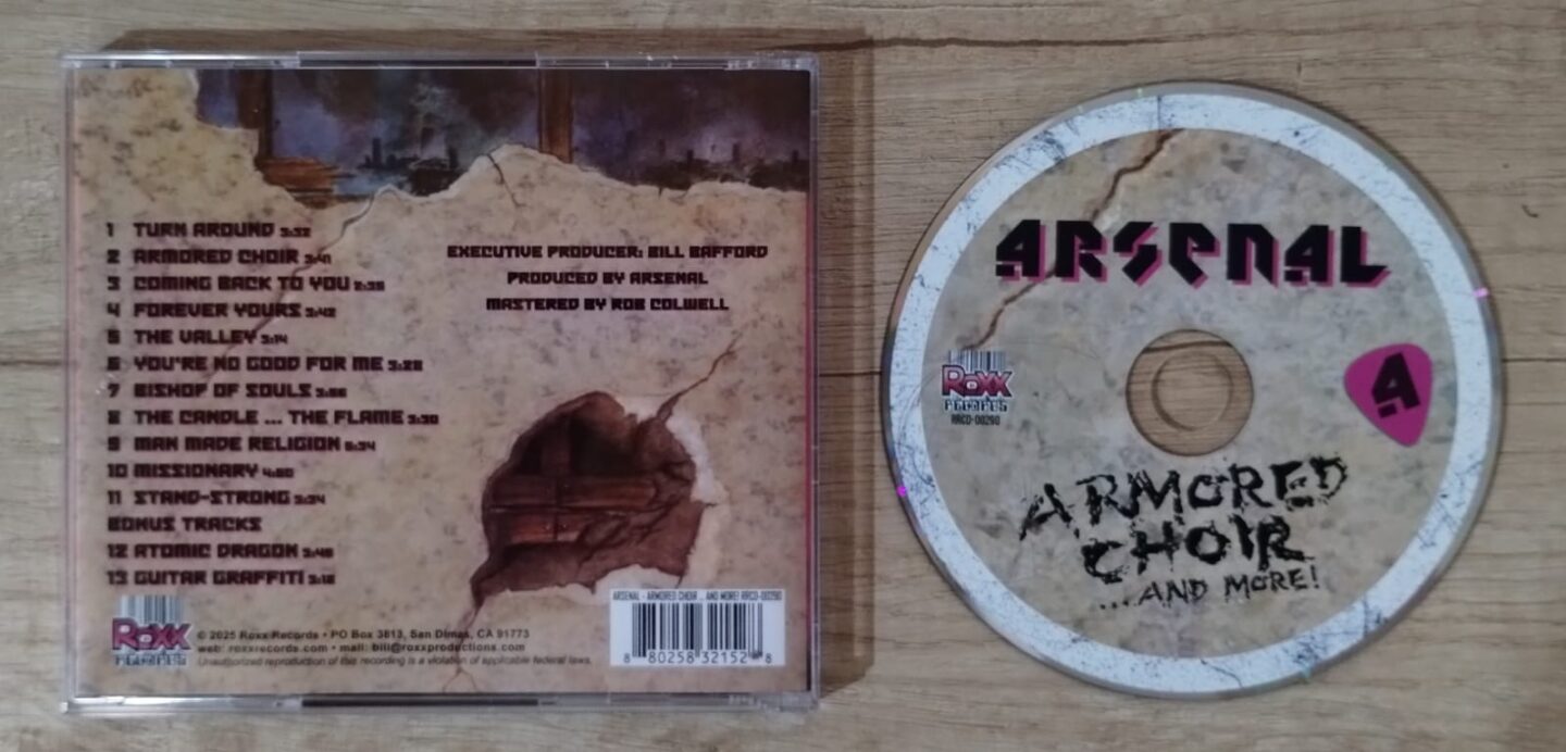 Empecemos desde el principio. Arsenal fue una banda de los años ´80, centrada en el género del “Hair Metal” o Hard Rock de cuño californiano, muy en boga por aquellas épocas (a pesar de estar basados en Tampa Bay, Florida). Su mensaje y letras, centradas en un mensaje cristiano, los arrima a bandas del estilo de Holy Soldier, Guardian, Angelica, etc. En 1990 lanzaron su álbum más clásico titulado justamente “Armored Choir”, que pasó un poco desapercibido, para luego lanzar un segundo trabajo independiente llamado “Peace Child”, del que mucho no se supo además de lanzar en los últimos años canciones varias en las plataformas digitales porque si, la banda sigue activa y al parecer, se prepara para futuros proyectos.