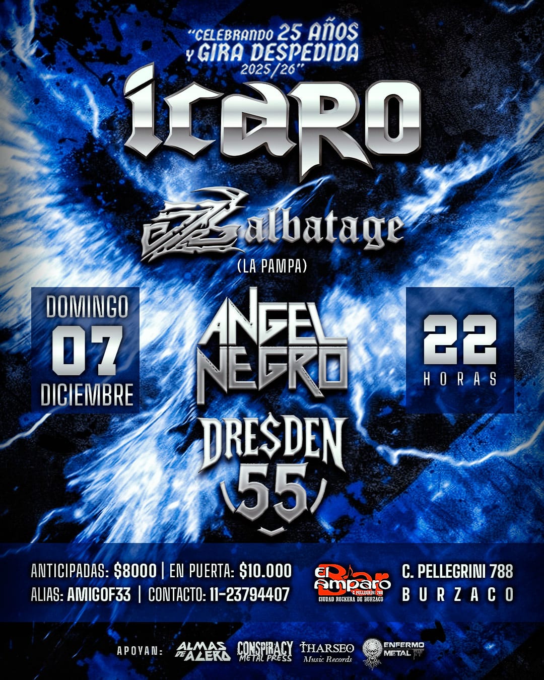 And as if that weren’t enough, Ícaro’s tour will also continue during the first months of 2026, with dates to be confirmed shortly. We can already reveal that the band will be performing on January 10, 2026, at “Vinoteca Perrier,” Mar Del Plata, but stay tuned for many more dates to be confirmed.