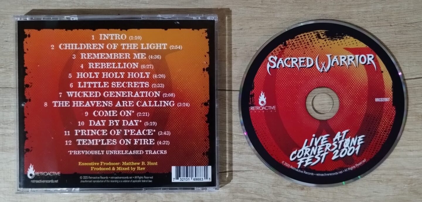 Son una de las bandas más queridas dentro de la escena del White Metal, y por supuesto, tienen una extensa trayectoria dentro del Metal. Les faltaba un álbum en vivo, y aquella legendaria presentación en el 2001, en el marco del conocido Cornerstone Fest fue la ocasión para que la banda vuelva a reunirse y registre este disco, potentes como pocos, y único trabajo en vivo que se conoce de Sacred Warrior. La edición original hace tiempo ya que se encontraba totalmente descatalogada, y en buena hora el sello Retroactive Records, así como hizo con otros materiales, rescata del ostracismo este disco en vivo de los Sacred Warrior.