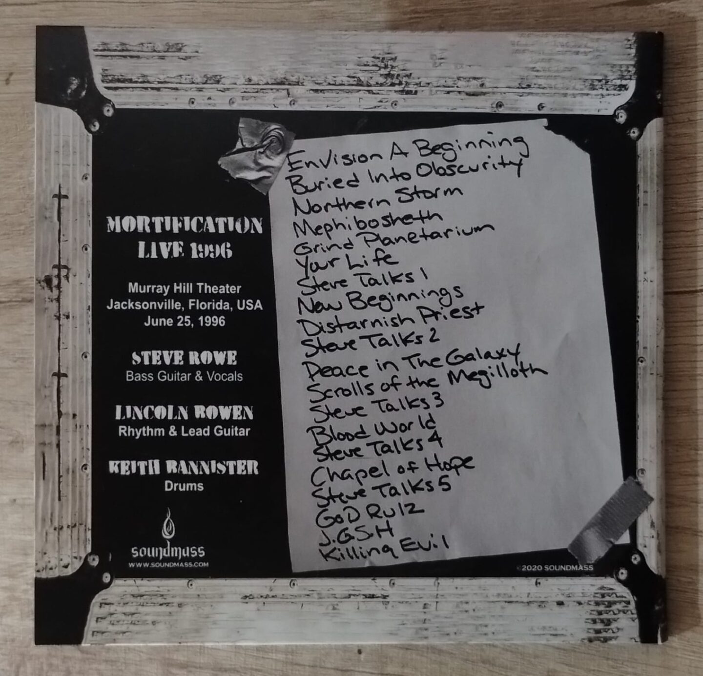 That said, it should be noted that this box set also contains a bonus disc. A CD released exclusively for this box set and never before seen. It is the album “Live 1996,” recorded on tour that year when Mortification was promoting “EnVision Evangelene,” released in 1996.