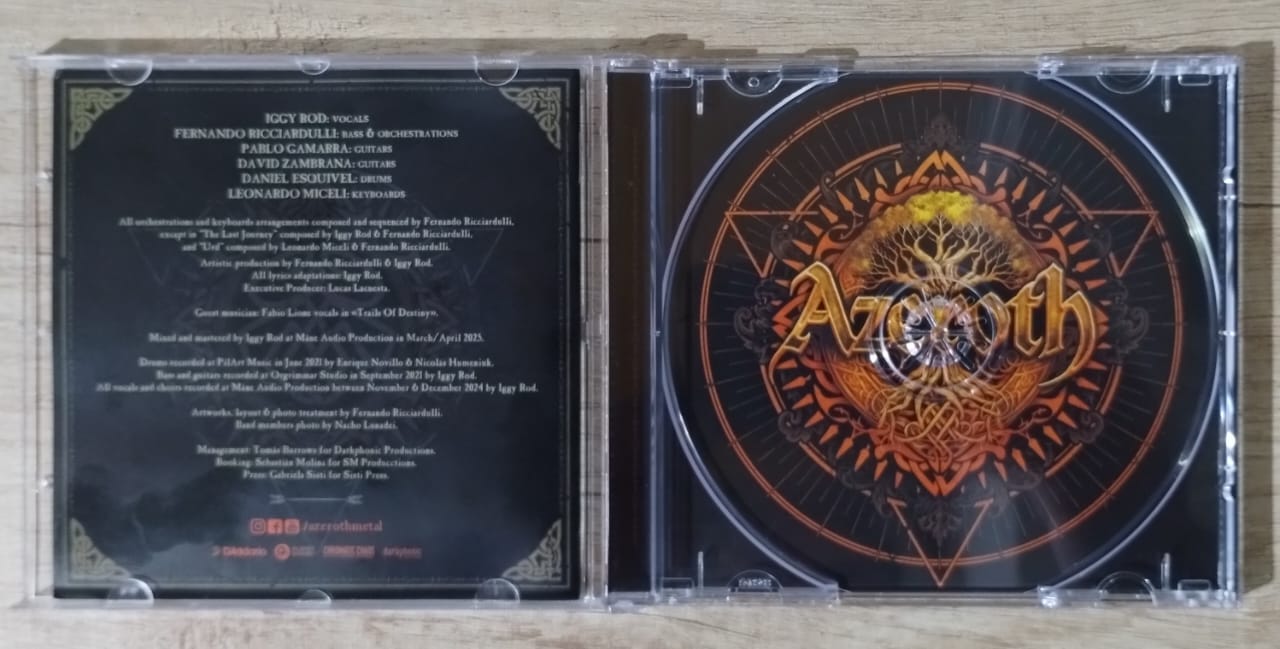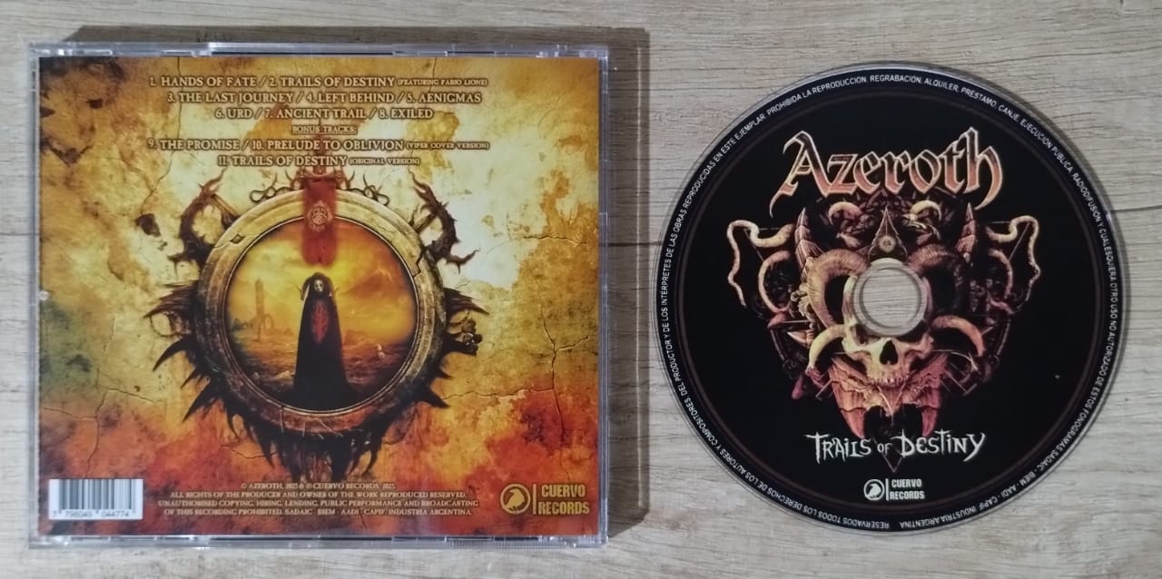 El álbum, al parecer y por ahora, solo fue lanzado en compact disc pero quizá, una versión en vinilo no vendría mal, nada mal. Para saber más sobre esta edición y poder conseguirla, les recomendamos contactarse con el sello “Cuervo Records”, en https://www.facebook.com/CuervoRecords. Y por supuesto, les dejamos por aquí las redes sociales de Azeroth, para seguir a la banda y enterarse de todo lo nuevo que se viene para ellos, y como es costumbre, un video lyric, en este caso de “Trails Of Destiny”, en la versión vocalizada por Fabio Lione….