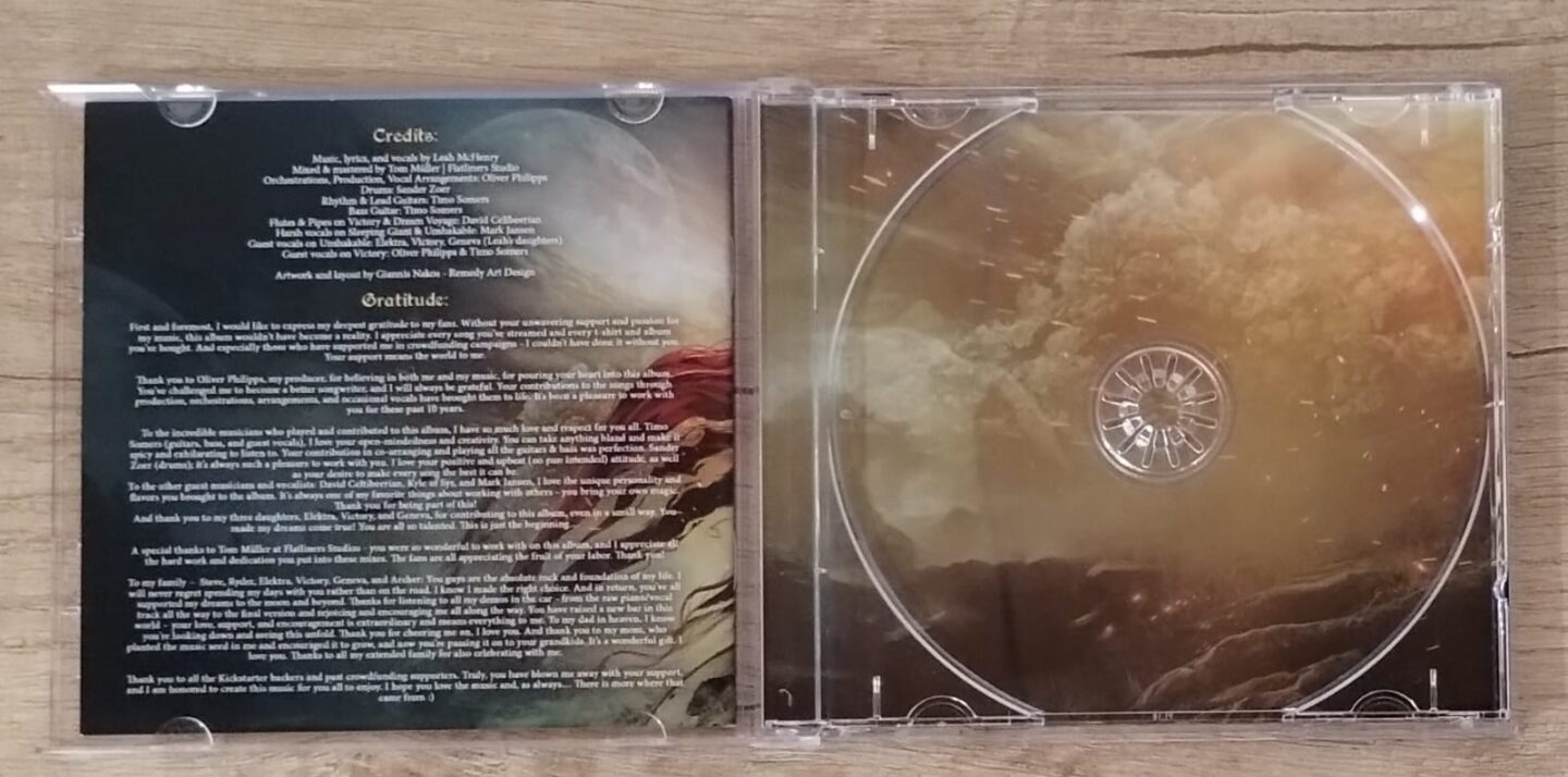 Tampoco se queda atrás el aspecto gráfico. Con una gran portada, que incluye a la misma Leah junto a un guerrero y un caído en combate, todo el sobre interno guarda la misma lógica de diseño y arte, que por supuesto, sigue la lógica musical del género que Leah cultiva, es decir, épico, con reminiscencias a lo medieval y folk. El booklet, además de imágenes alegóricas a cada una de las canciones, como es de esperarse, incluye las letras de cada canción, las cuales resultan ser lógicas a la onda del álbum. Leah Martin se declara asimisma como cristiana, pero sus composiciones no resultan en un mensaje cristiano típico sino que la lírica va por otro lado. Canciones de inspiración positiva y constructivas es lo que aquí tenemos, alejando a Leah de cualquier cliché que se aprecie como tal.