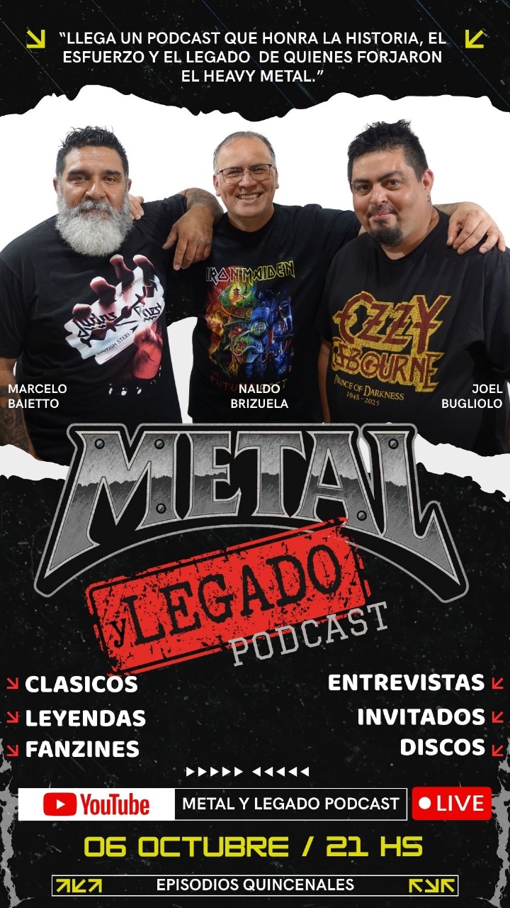 Metal y Legado Podcast – Martes (cada dos semanas) 00:00 hs UTC (Lunes 21:00 hs Argentina) – https://www.youtube.com/@MetalyLegadoPodcast o https://caballosdemetal.com.ar/