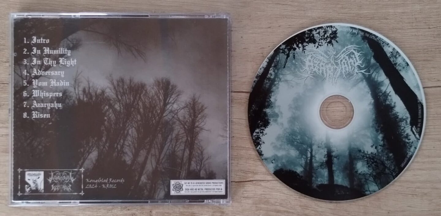 La portada es una imagen con influencias medievales, en blanco y negro, y el interior del booklet, el diseño sigue la misma lógica. Quizá como una extensión de lo que la banda transmite musicalmente. Nos pareció muy acertado el banner puesto en la contratapa que pide encarecidamente que “digamos no a las producciones sonoras generadas por IA”, algo que compartimos totalmente.
