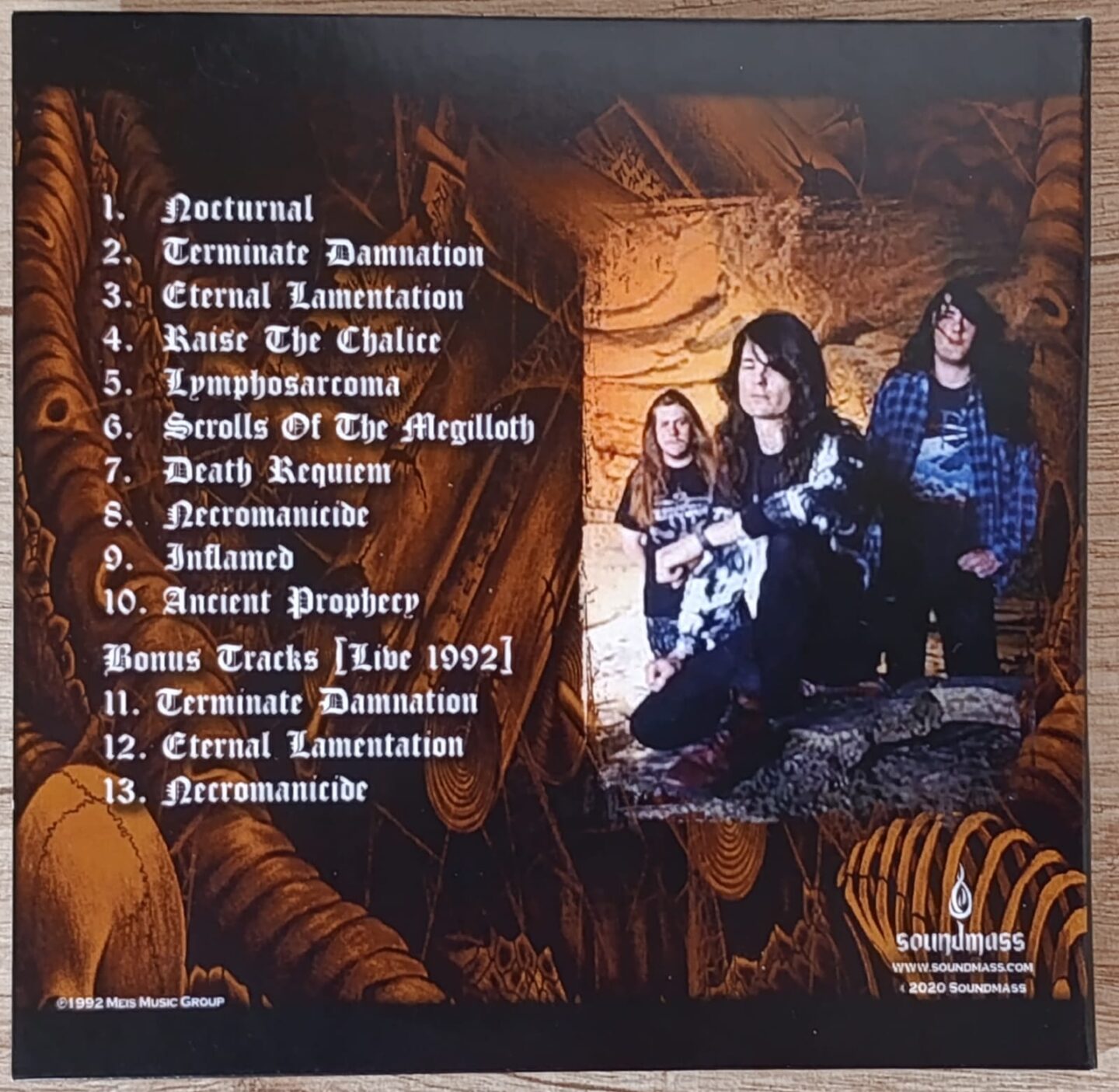 Reviewing an album like this is no easy task. It must be said that, in principle, there are no bad, repetitive, or boring tracks here. Each song is a blow of serious considerations. The degree of inspiration in the composition reached such heights that Steve Rowe and company would never again achieve such virulence. Right from the start with “Nocturnal,” we can tell that we are dealing with a great album. Its intriguing beginning, full of “nocturnal” sounds, introduces us to the appropriate atmosphere. Almost immediately, we hear the guttural squawk that characterizes the beginning of “Terminal Damnation,” which alternates between mid-tempo riffs and full-speed blast beats. “Eternal Lamentation” raises the stakes, increasing the speed and fury, giving the ear no respite.