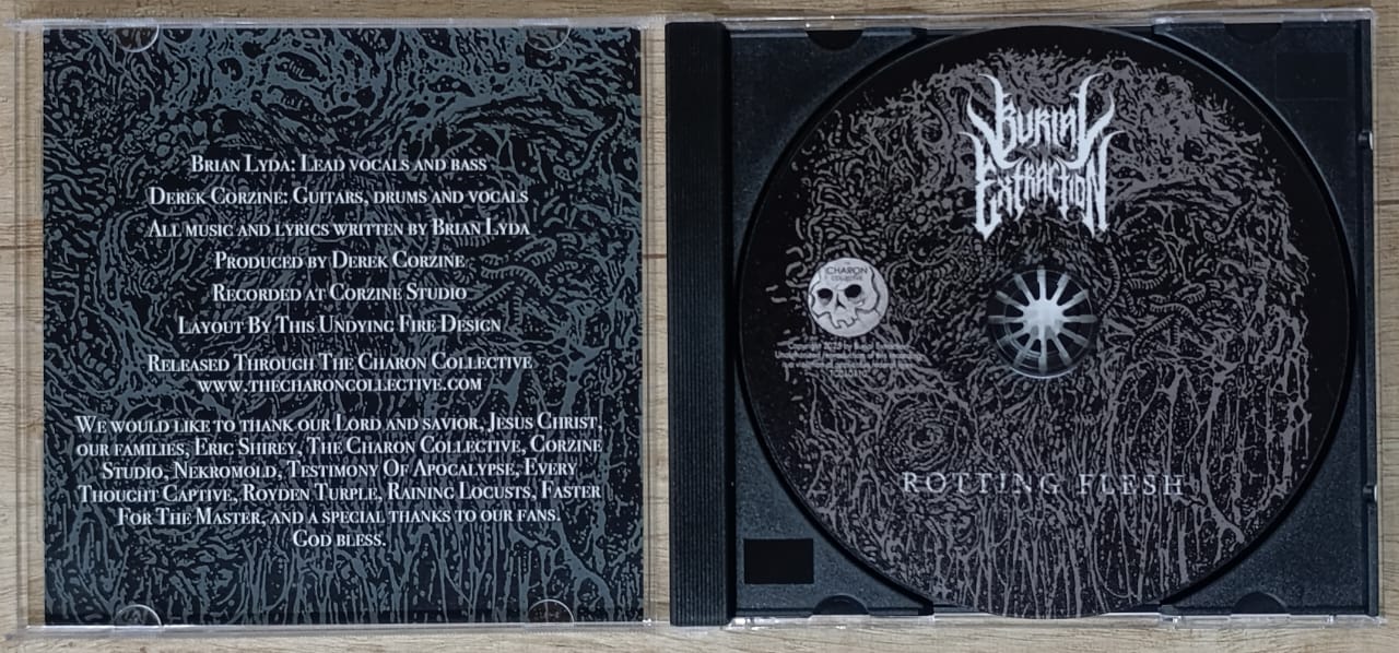 Even so, “Rotting Flesh” leaves us wanting more. Five tracks seem too few for what Burial Extraction delivers here. To start with, “Blood-Soaked Robe” blows our minds. You can’t attack like that right from the start! Well, Burial Extraction does. With truly killer riffs, bouncy drumming, plenty of thrashing, and a touch of grindcore, you could say this is the key to this work: knowing how to balance each influence and capture it in a track as interesting as the guitar solo that complements it.